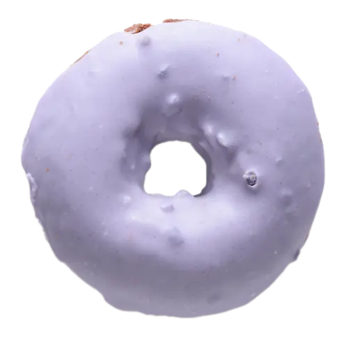 Jagodowa Pokusa to pyszny donut z jagodowym nadzieniem, delikatnie otulony słodką polewą, który kusi intensywnym smakiem świeżych jagód.